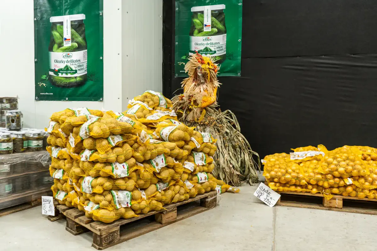 Čerstvé brambory z vlastních polí, cibule, jablka a další sezónní plodiny – přímo od pěstitelů.
